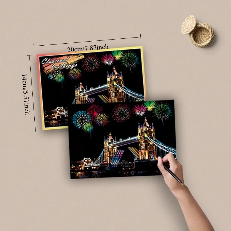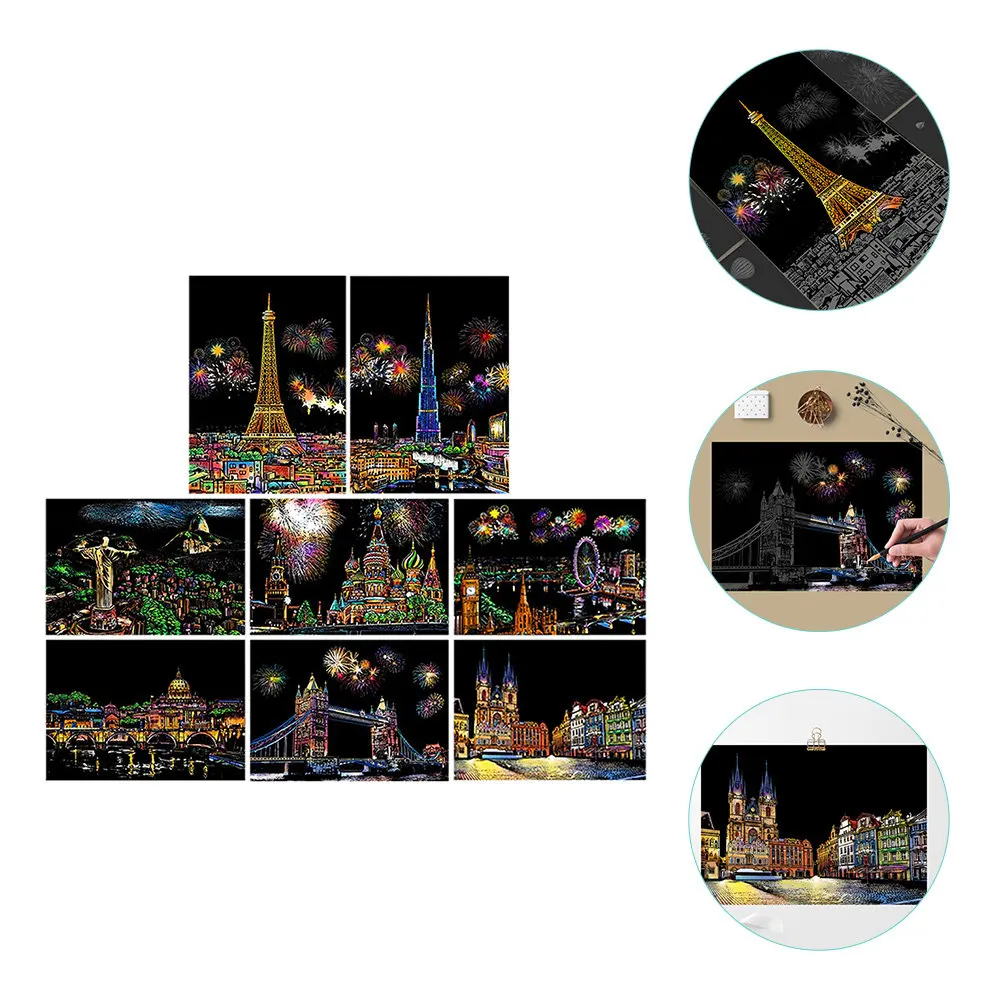 8 pieces méret Város Építés Felkarcol kártyák Város Építés Felkarcol kártyák éjjeli Jelenet Festés Dolgozat DIY mesterségek Mesterkedés Kreativitás