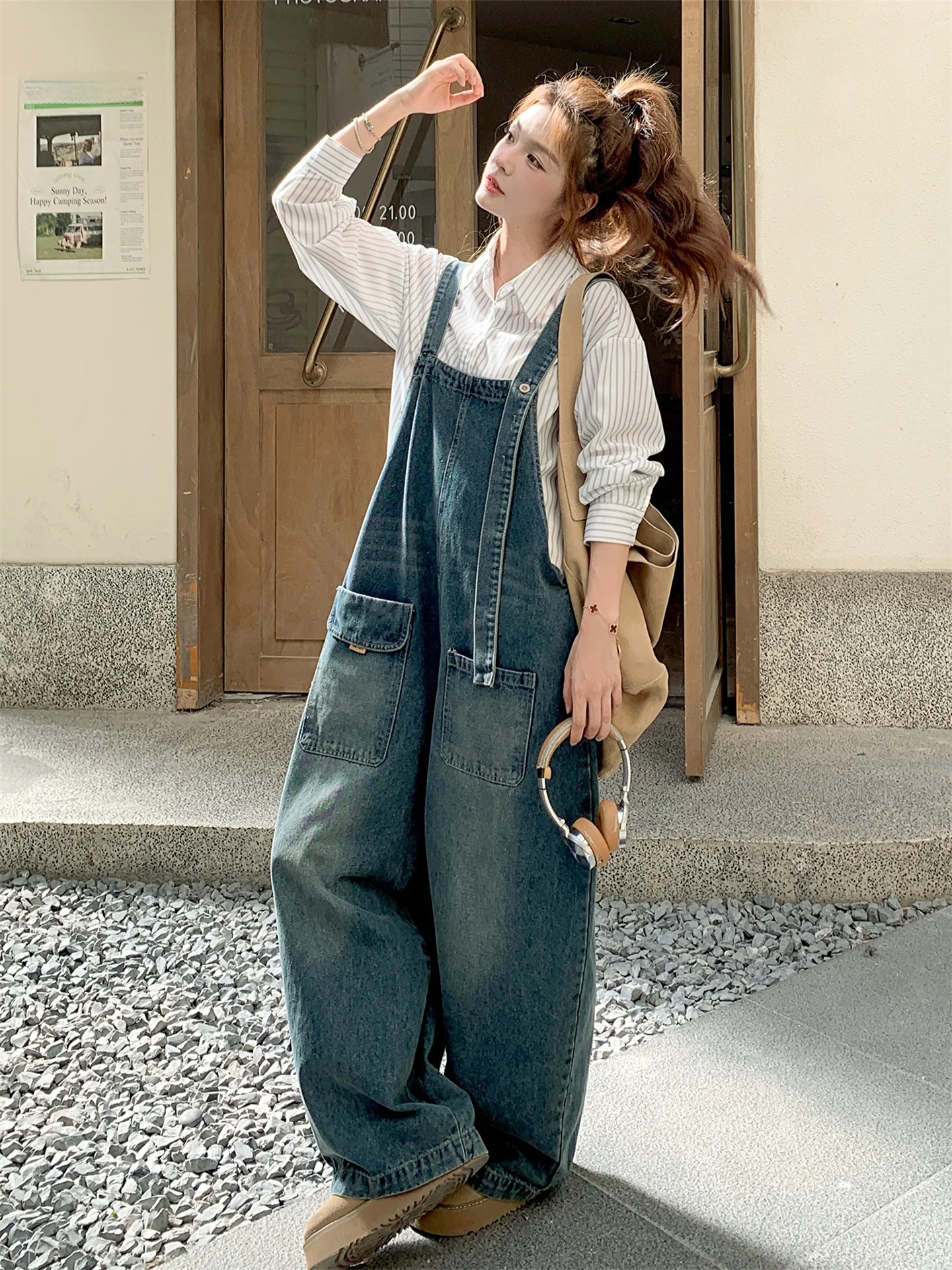 Jumpsuits Nők button-design all-match streetwear Csináltatás Alkalmi Koreai stílusú Ingó- egyenesen kezeslábas Lecsavarható Nadrágtartó