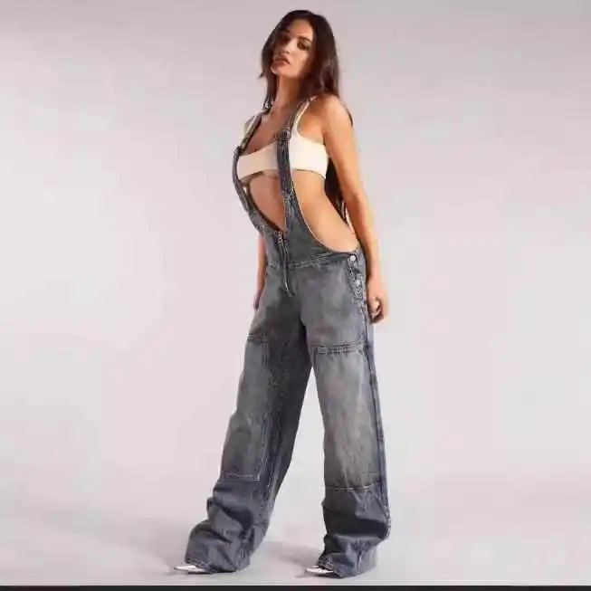 Árad vmiből Csekély Ujjatlan Csináltatás commuting kezeslábas Női Egyéniség utc retro stílusú high-waisted Beesett backless kezeslábas