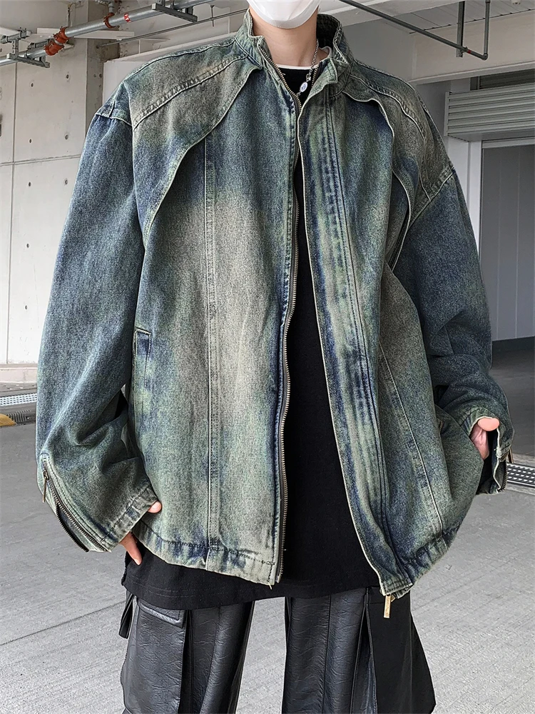 Retro Elsárgul Csatak distred Cajgvászon jaet Ingó- illeszkedő Alkalmi Cipzár jaet Árad vmiből 2024 men's faionable Alkalmi outerwear
