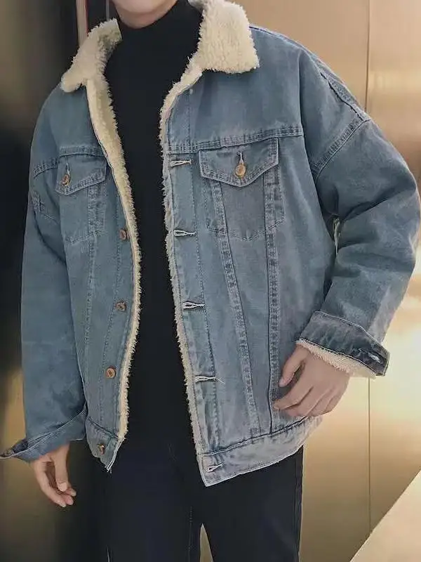 Férfiak Ősz majd téli Cajgvászon kabátok polár tömör Hajtóka Csináltatás Motorbicikli Farmernadrág hommes Csekély illeszkedő Gyapot Alkalmi Ágcsernyő Kék Alvóhely