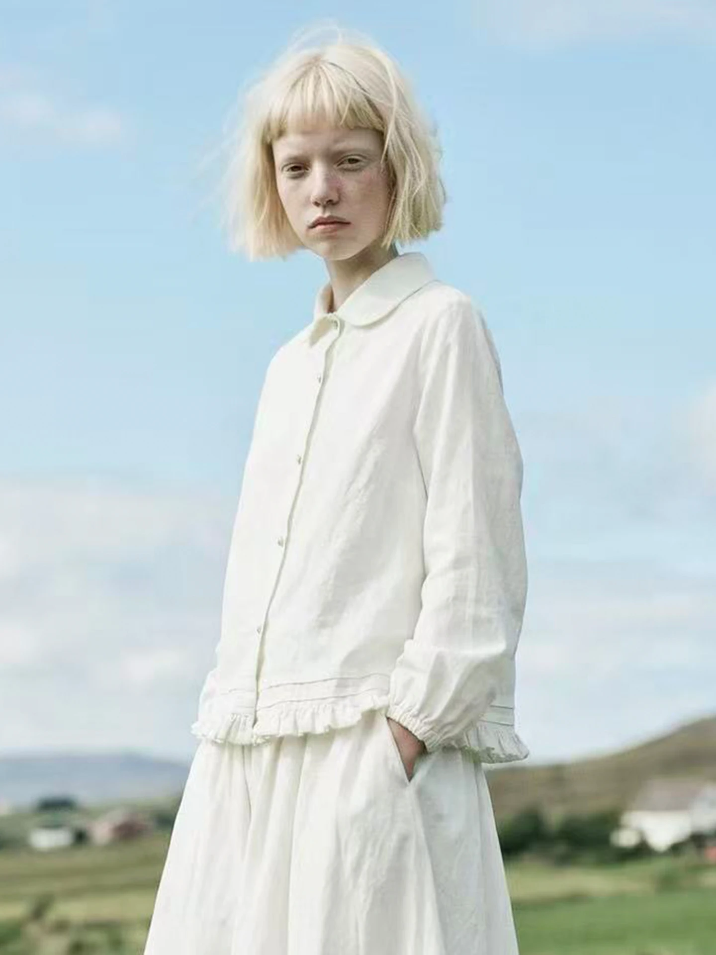 Imakokoni2026 Eredeti Árad vmiből Mesterkedés Fehér Gomba Alvázkeret stv sleeved Ing Erdő stílusú Babaarcú de nem okos nő Csőbilincs Ing 265386