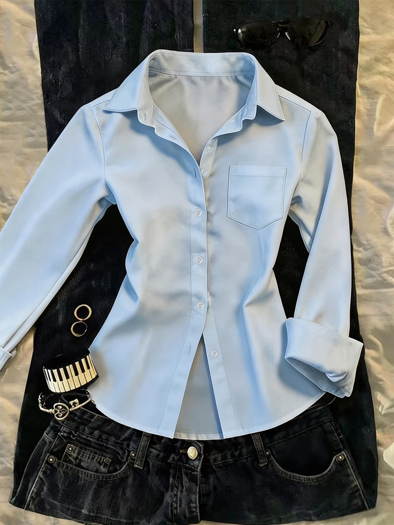 Stv Ingujj Ing Nők Ősz Öltözés Csináltatás Csekély Fehéráru Blúz vcc nyakú Koreai Választékos hölgyek Hivatal shirts Fehér Bronzszínű DF2324