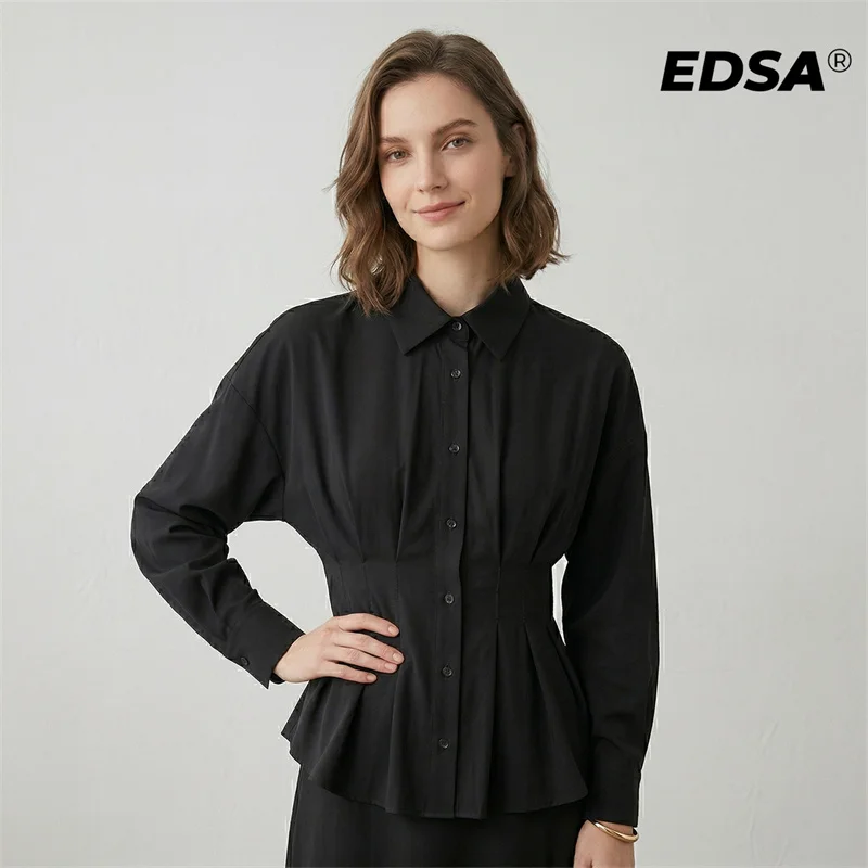 EDSA Nők Ágcsernyő egységes Hasas Ing stv ujjú Visszahajtás Csőbilincs waist-cinching blouses Alkalmi Csináltatás Bamba Anyaállat tops