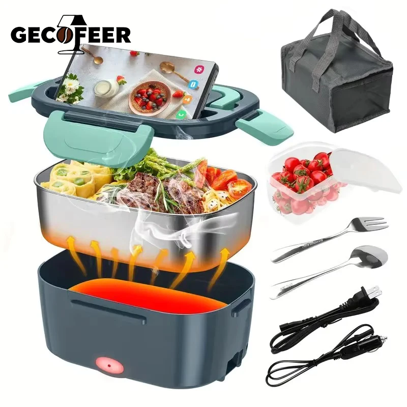 GECOFEER 1.5L 60W Elektromos Ebéd Loggia élelmiszeripari Melegítő Hordozható élelmiszeripari melegítő számára autó vag Ebéd Befűtés Mikrohullám számára truckers