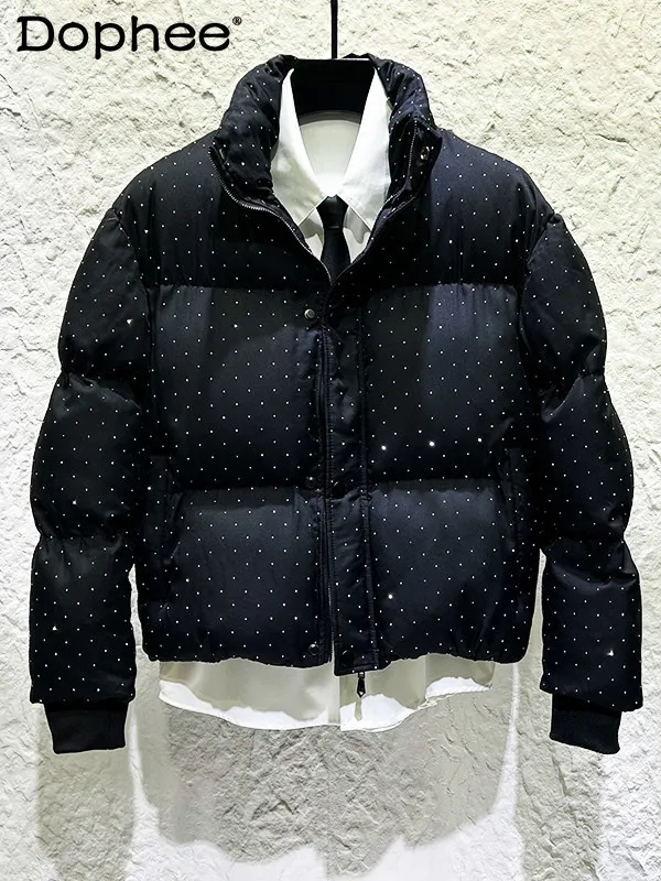 Koreai Változat ins Csináltatás high-end Nagy teljesítményű diamond-encrusted Gyapjú- Alvóhely Design Átérez Jóképű kabát Legújabb divat férfiak