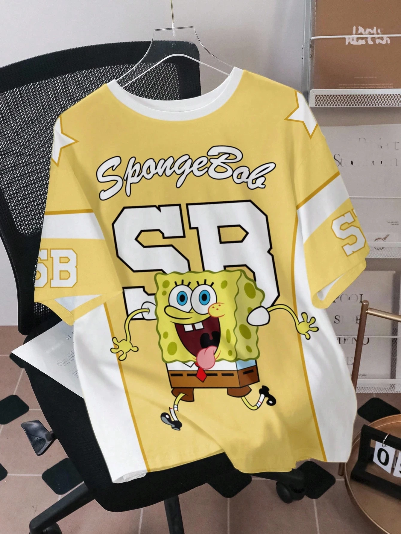 Spongebob mintás Imprimé kelme Női pólók Födémgerenda Divatos Magas minőségű Porhanyós Ingujj Alkalmi sportok Futam nyakú Garbó tops
