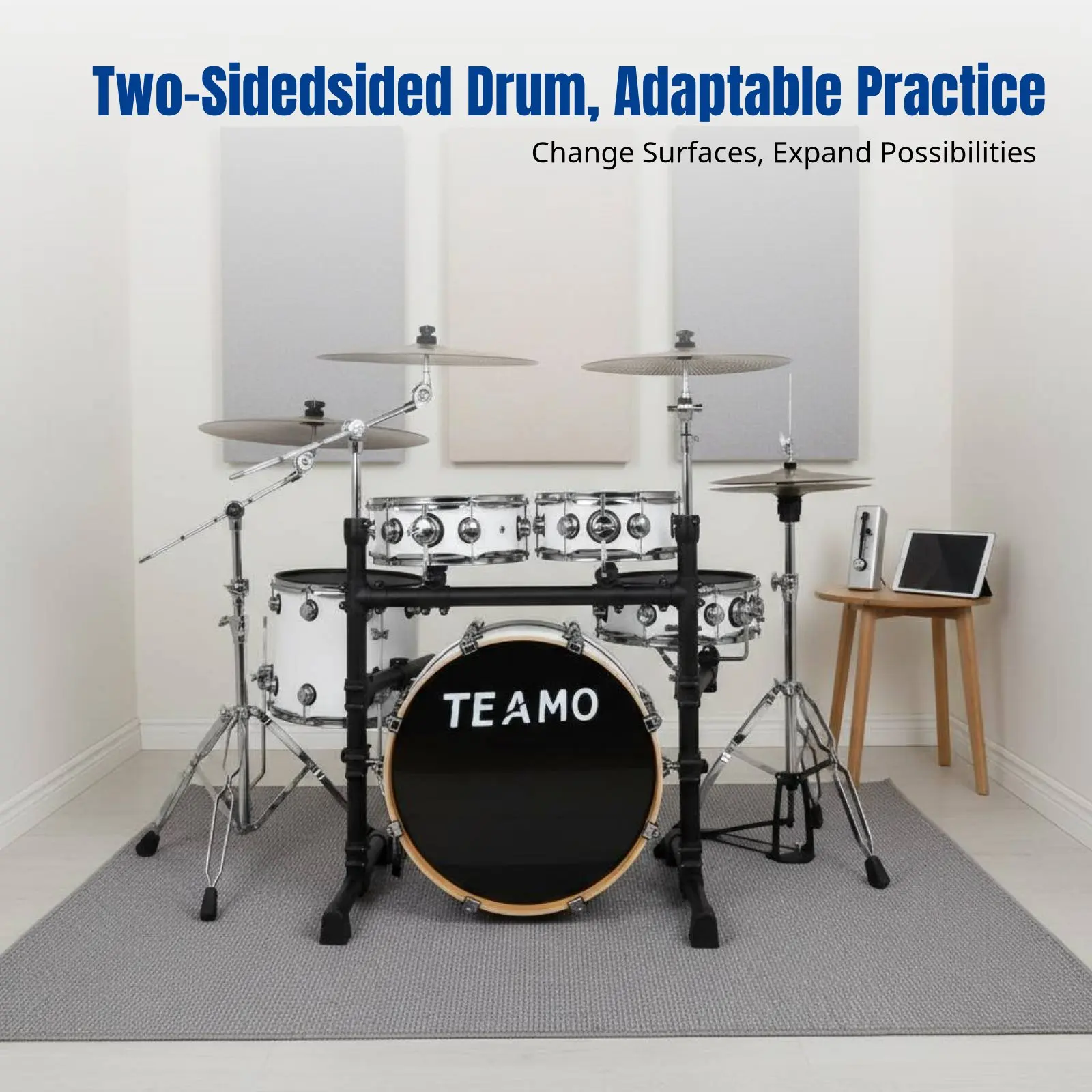 Dzsessz Dob beállítása vel 5 Dobfelszerelés majd 4 Medence, double-sided, Hordozható, Csendes Begyakorlás, számára Kezdő majd felnőttek, multi-color