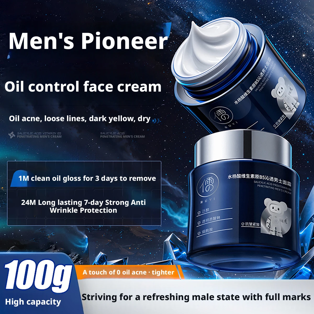 RUYI salicylic ACID Vitamin B5 men's arca Föl Hűsítő hydrating Csillapító Elkészítés moisturizer számára férfiak skincare 100g
