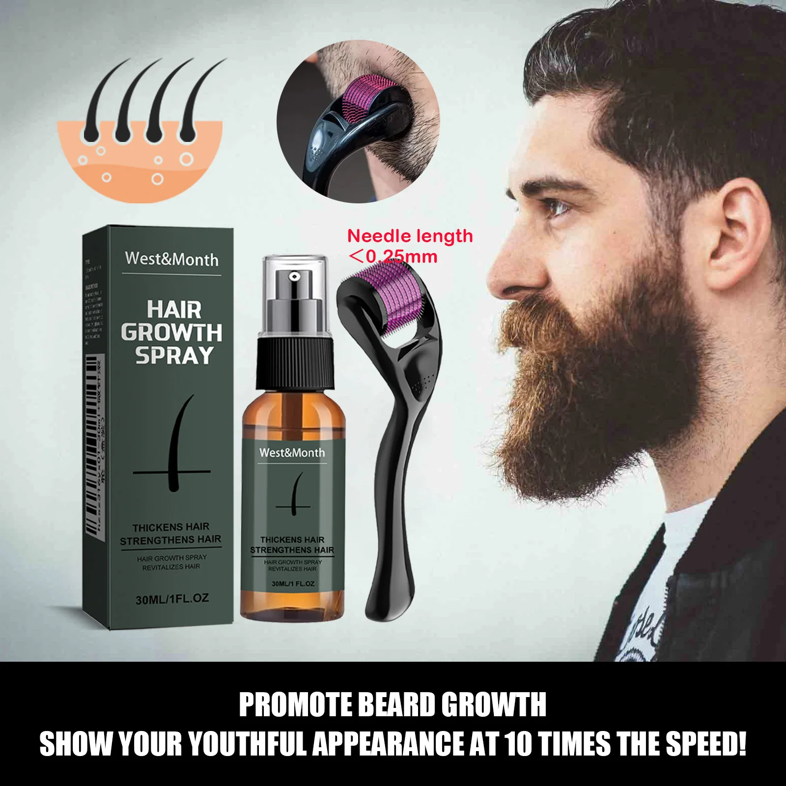 Men's Szakáll Felszaporodás szp készlet vel mikro Görgő hidratáló Vastagodik facial haja Szakáll Felszaporodás Illatszer Tartalmas szp Szakáll érdekel