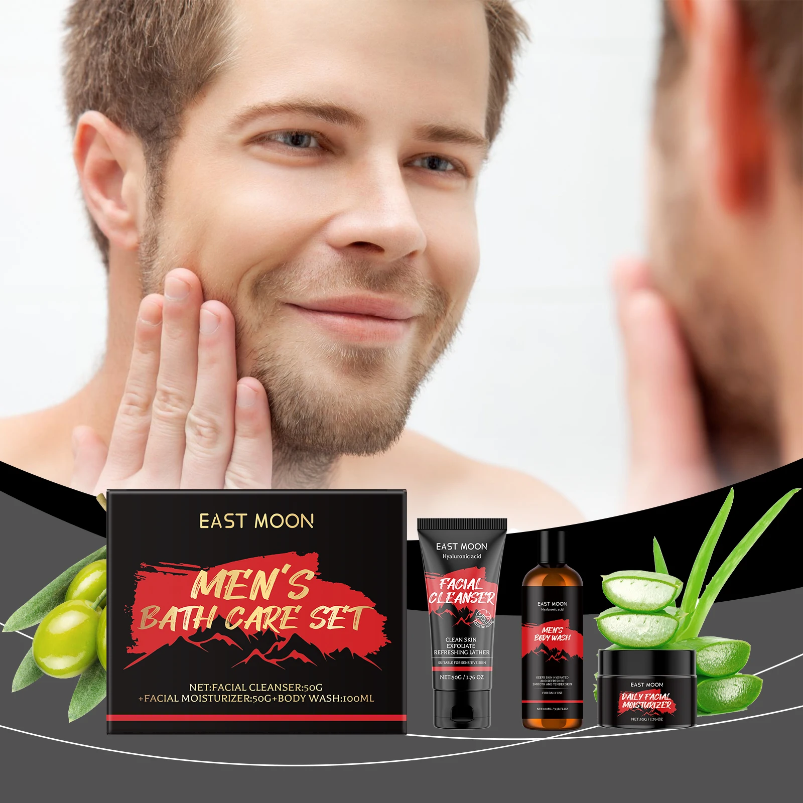 Men's skincare facial Detergens facial moisturizer Bani mossa beállítása Szanálás hidratáló karácsonyi Adomány arca Alapanyag Szanálás