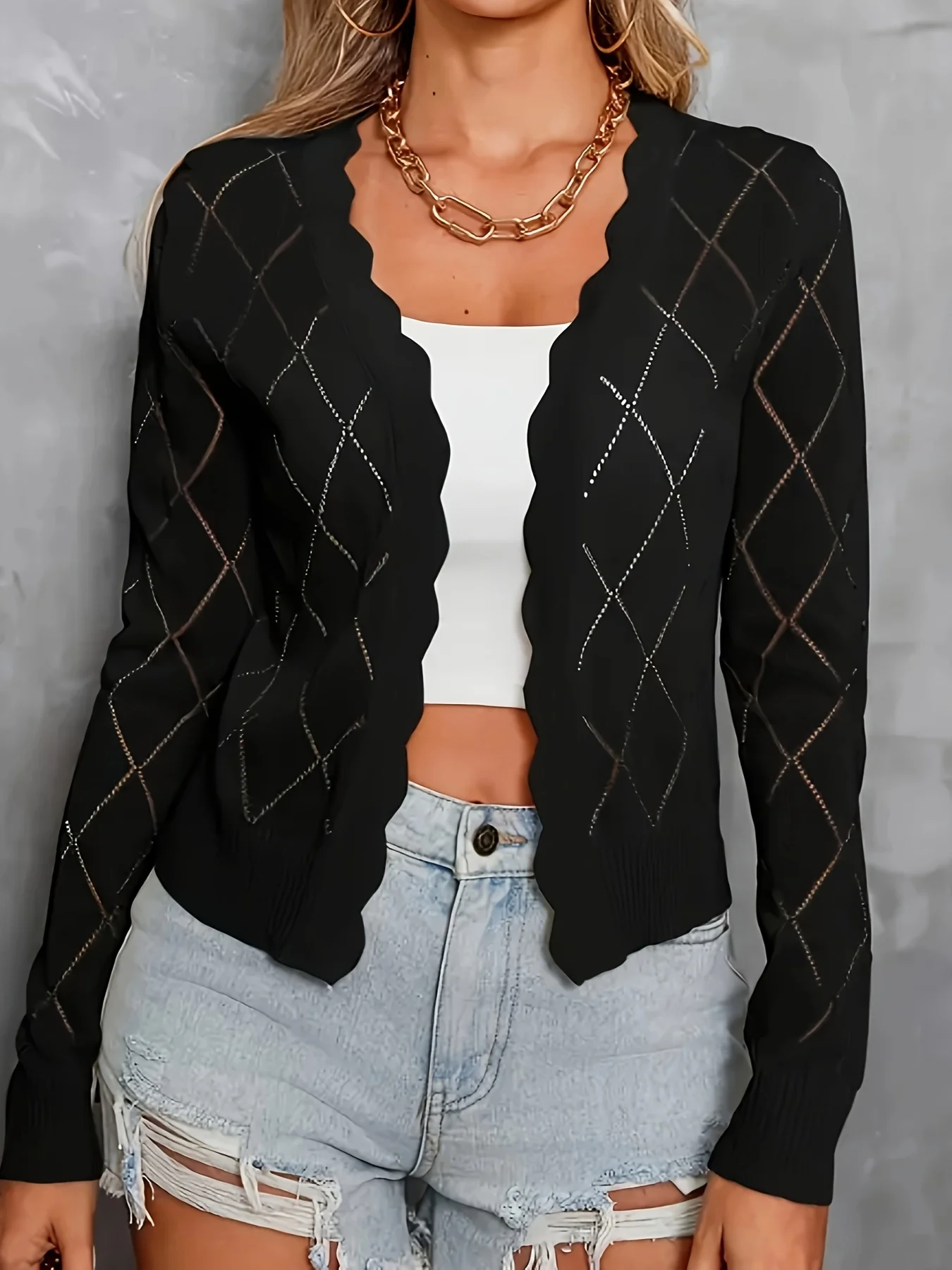 Női Ágcsernyő plus-size Kötött Kardigán, Divatos majd Alkalmi Kardigán vel Kerti ruta perforated mintás
