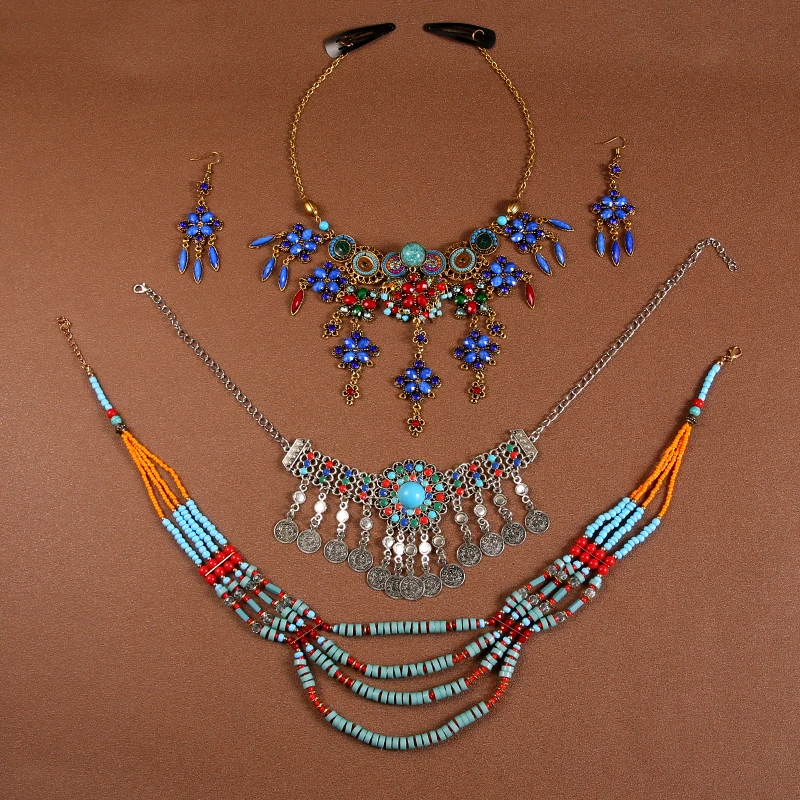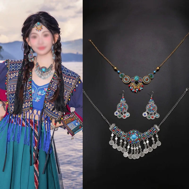 É Etnikai sle nelace headwear Fülbevaló beállítása utazási photoaphy Tibeti Homlok Futószalag faion ékszer accories