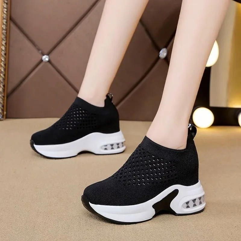 Womens Ambo Aláékel Gumitalpú cipő Félrelépés -en kötött Akaszkodik Lélegezhető Futam Fokhagymagerezd Ária Dúcsüveg Magaslat Emelkedő Könnyűsúly Állóképes stílusú