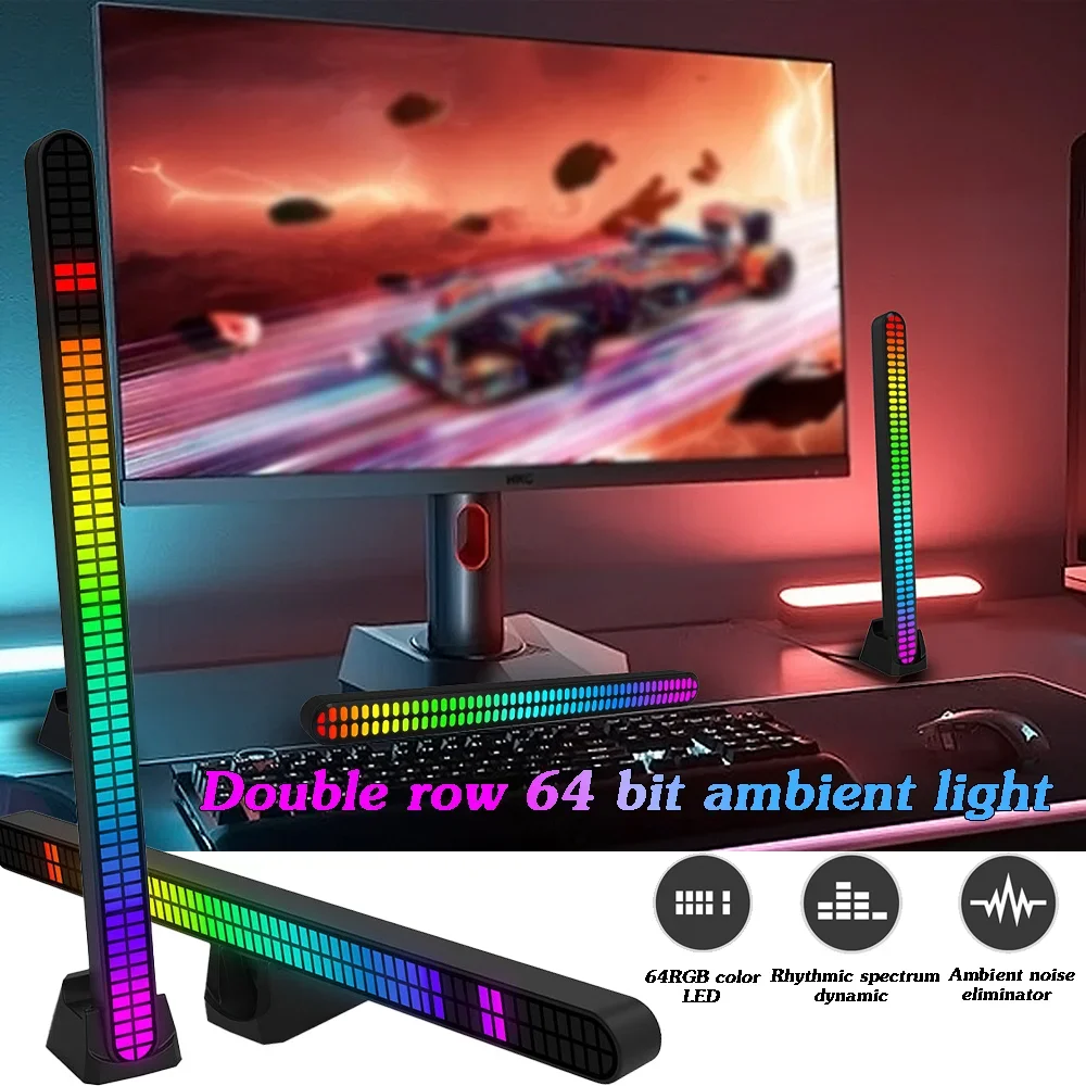 30CM double-row 64bit RGB platos ligh újratölthető Delejes ledes ligh sáv Atmoszféra Lámpa Muzsika Ritmus ligh autó Környező ligh