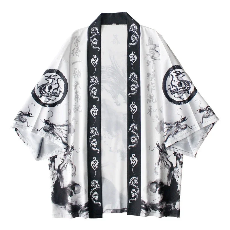 Japán nyelv Hagyományos Öltözés Japán nyelv Kimonó Női tint Dragón nyomtatás Födémgerenda Magas minőségű Kardigán Félidő Ingujj Ingó- Erőt önt vkibe