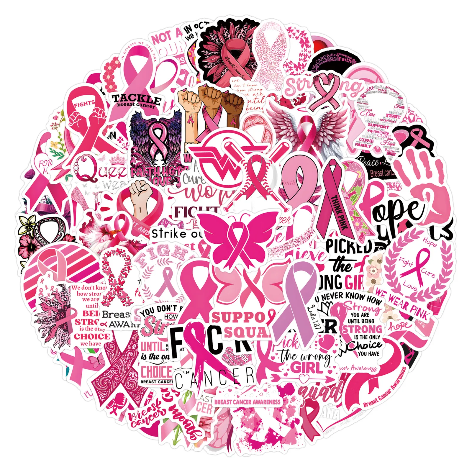 110PCS Pink Pántlika Csecs Rák Eszmélet matrica DIY scrapbook Poggyász Notebook telefon Gitár Vízálló decals