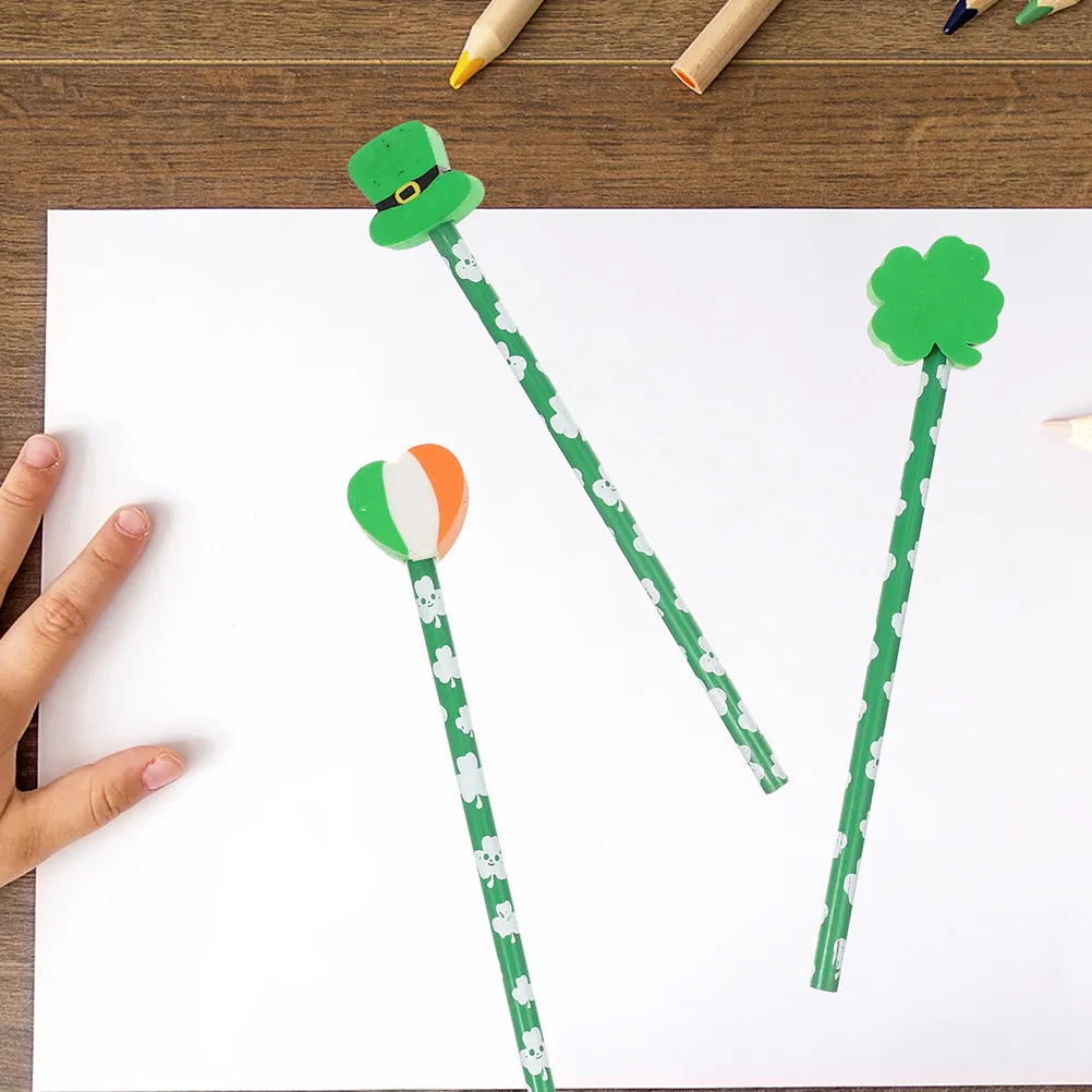24pcs faipari Ceruza Szent patricks Egynapi út Gúnyrajz ceruzák Írás Mintázat Ecsetel Bélyegragasztó tipped Kényelmes Alvadás Iskola Mesterkedés