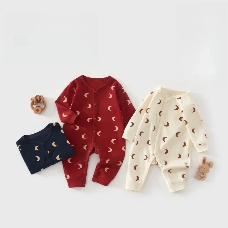 Új Árad vmiből Esik téli Újszülött Baba stv sleeved Imprimé kelme Hold kezeslábas készített bel Akadálymentes Gyapot aranyos haye számára 0-1 évek fiúk lányok