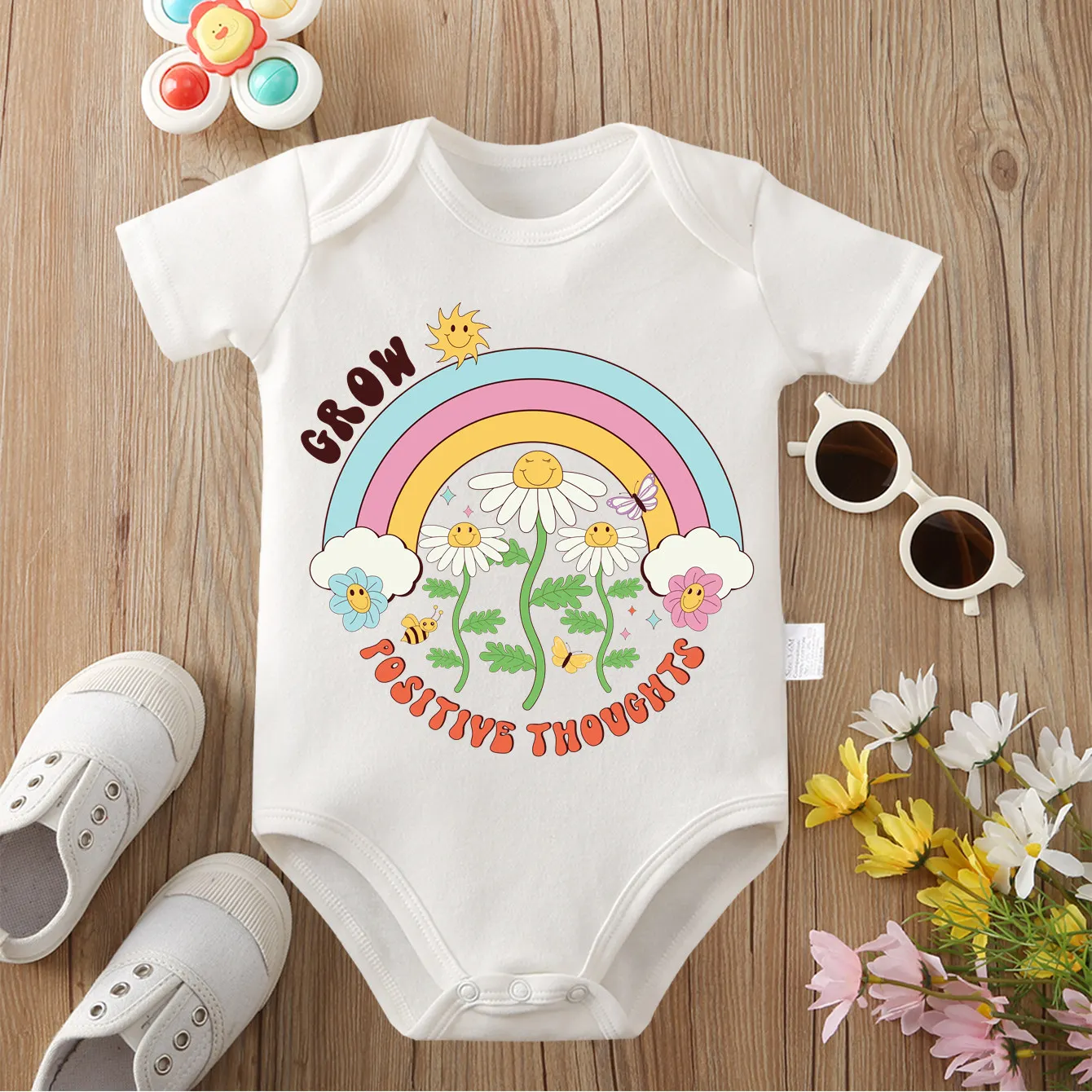 Akadálymentes Gyapot bodysuit Árad vmiből uhr Eljövendő virágos méh nyomtatás Kényelmes onesie cloths számára Baba kezeslábas számára 0 kelt 12 months Újszülött