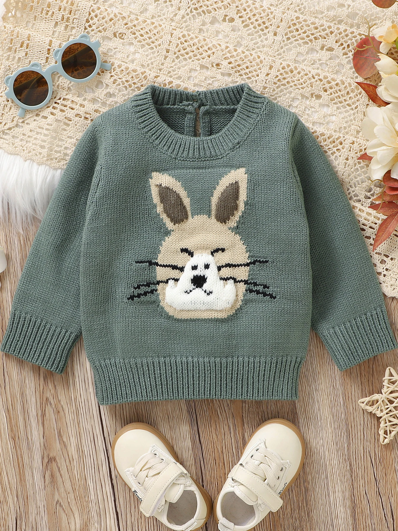 Alkalmi Gügyög nyakú Baba fiúk Gúnyrajz Nyúl embroidered kötött Pulóver számára Esik téli