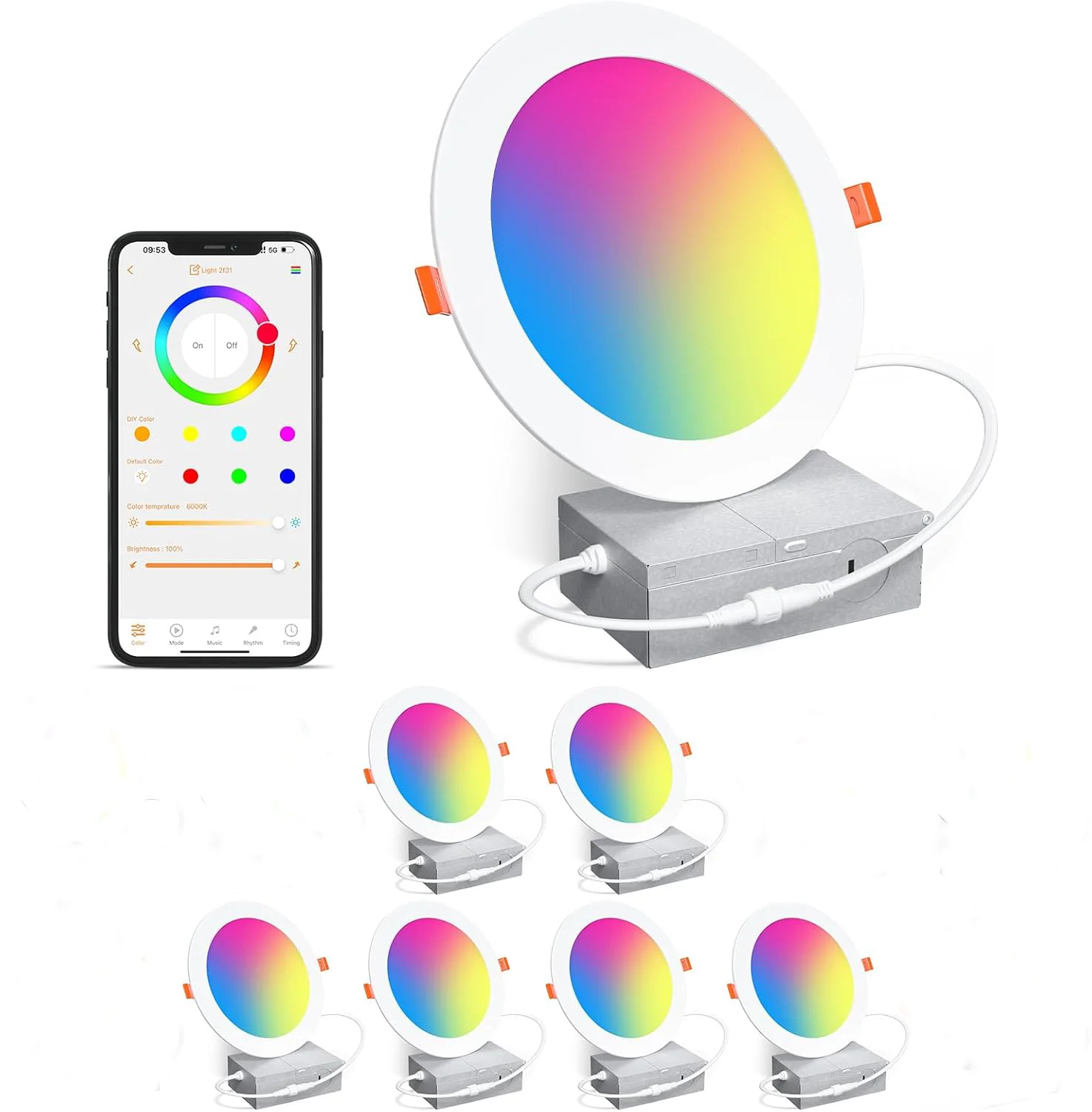 1-10 PCS 5W smare RGB wifi ledes downlight szabályozható színben Változó Csúcsmagasság Lámpa vel app & Énekhang kontroly számára Google kereső haza majd alexa