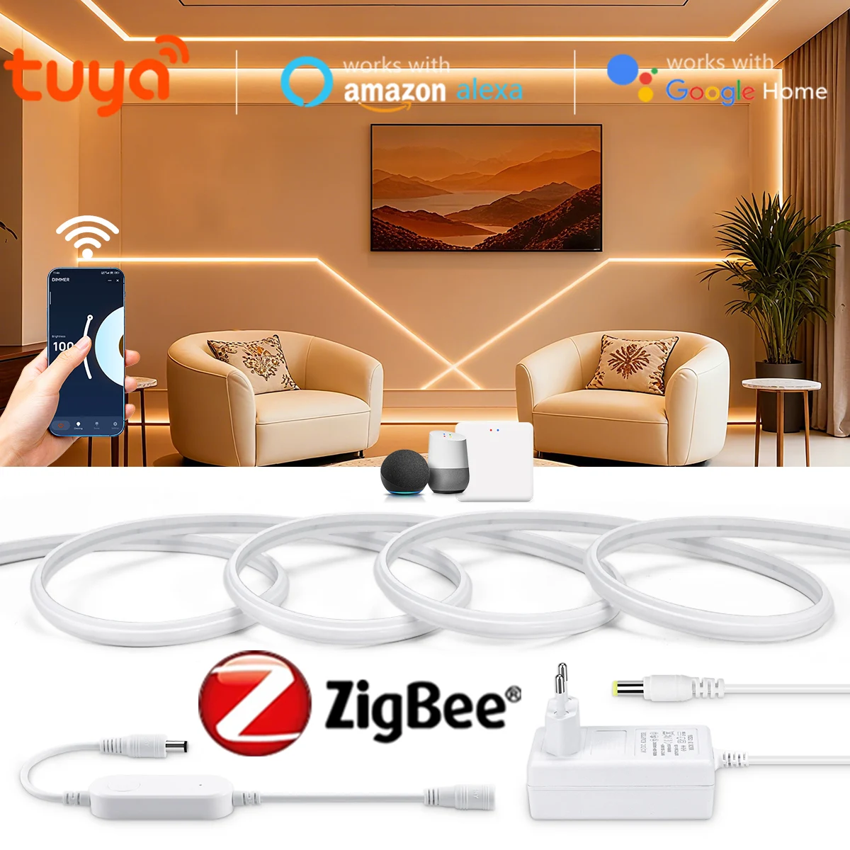 Zigbee Tengericső tuya wifi ledes csík Fényeső Világítás Eszes Árammegszakító szekrény Lámpa smare haza Automatizálás működik vel alexa Google kereső haza