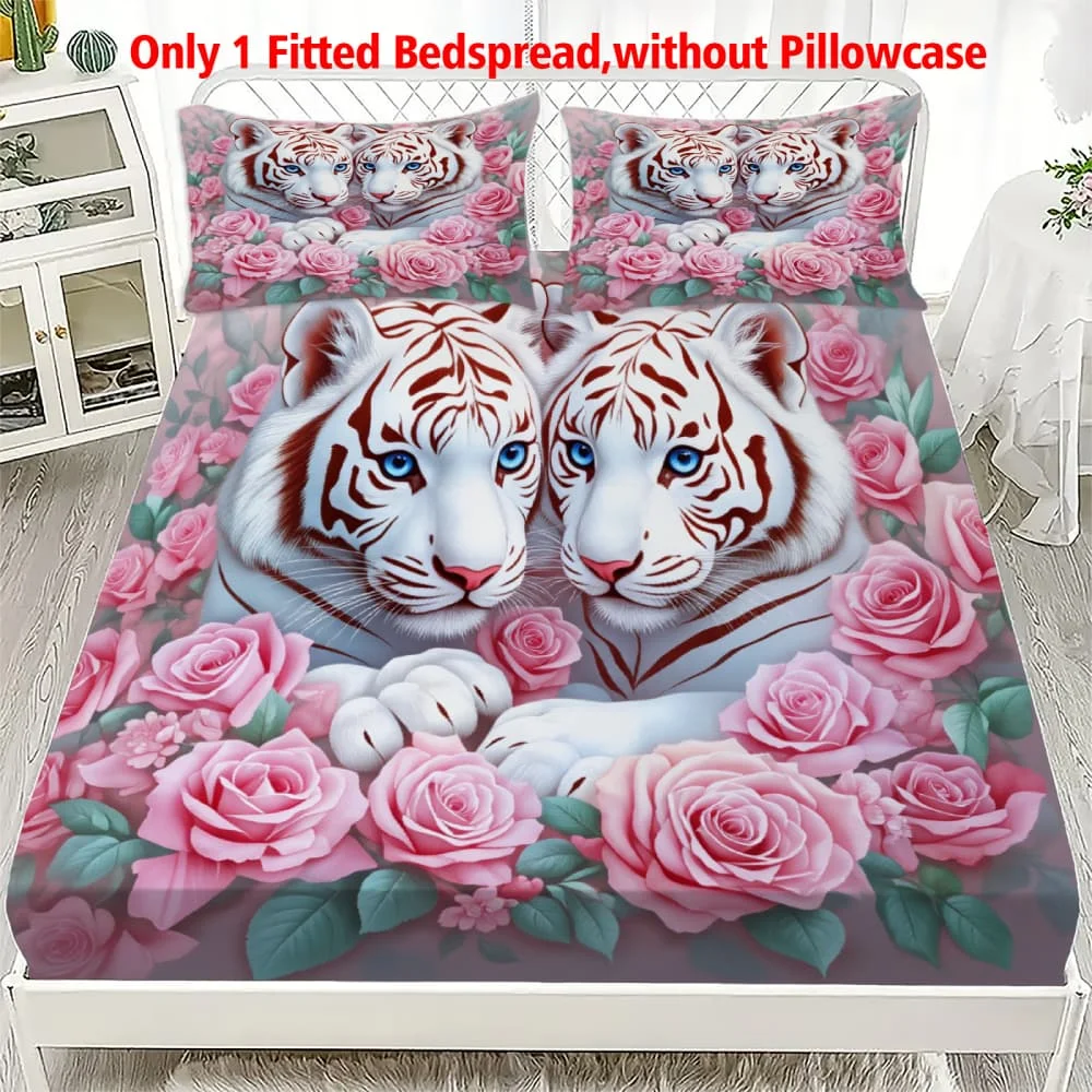 1db Fehér Tigris vel Pink Rózsák nyomtatás fitted Bútorhuzat Alacsony légnyomású levegő Vágólap Alkalmazkodó m Ágybetét fedezze egységes Dublőz Dáma Király Hálószoba dekor