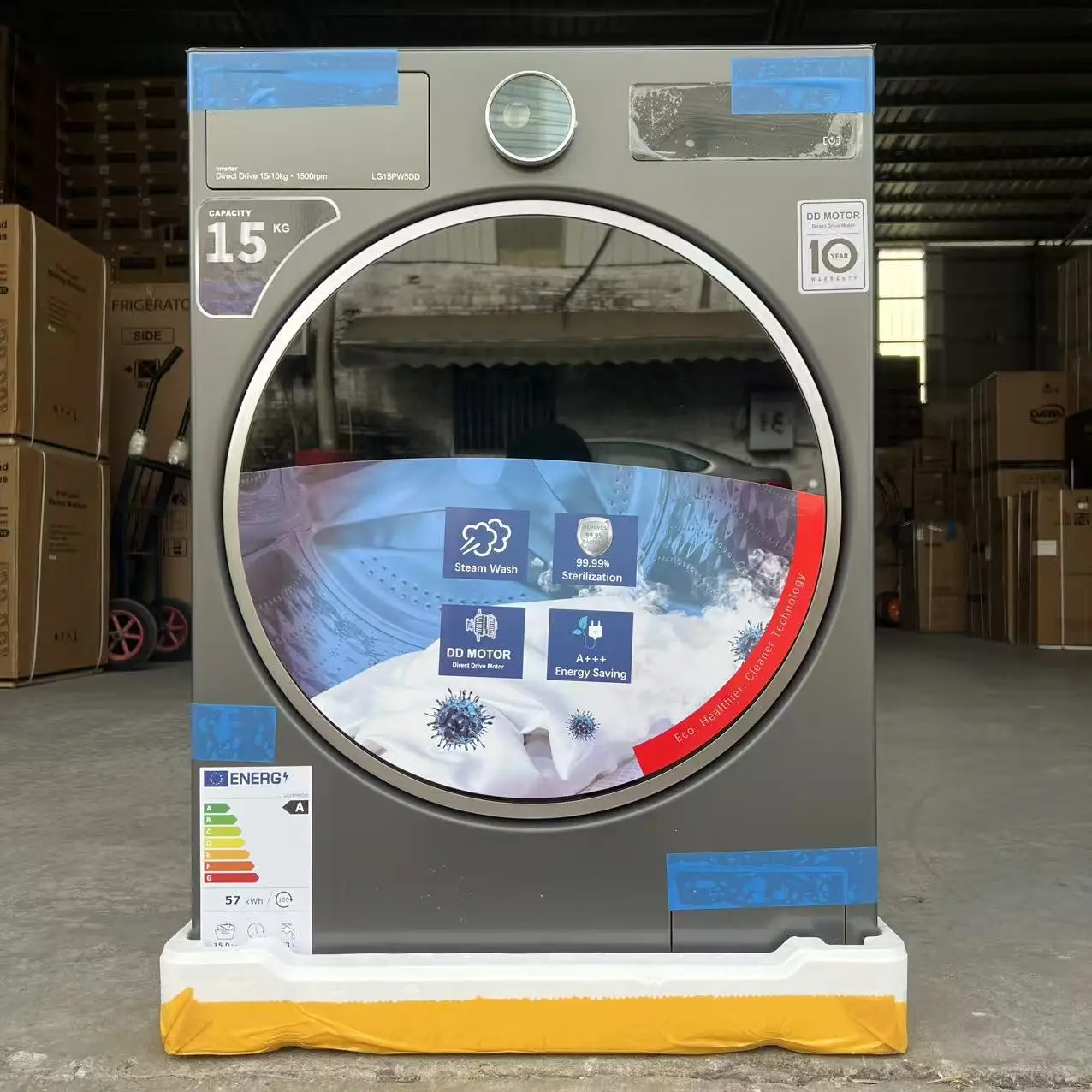 Bejárati teherbírású Lúgozás gépi Homályos Szürke DD Inverter motoros 10 évek Jótállás 15KG biss kapacitású 520mm Dob ledes érintse Kivet kontroly