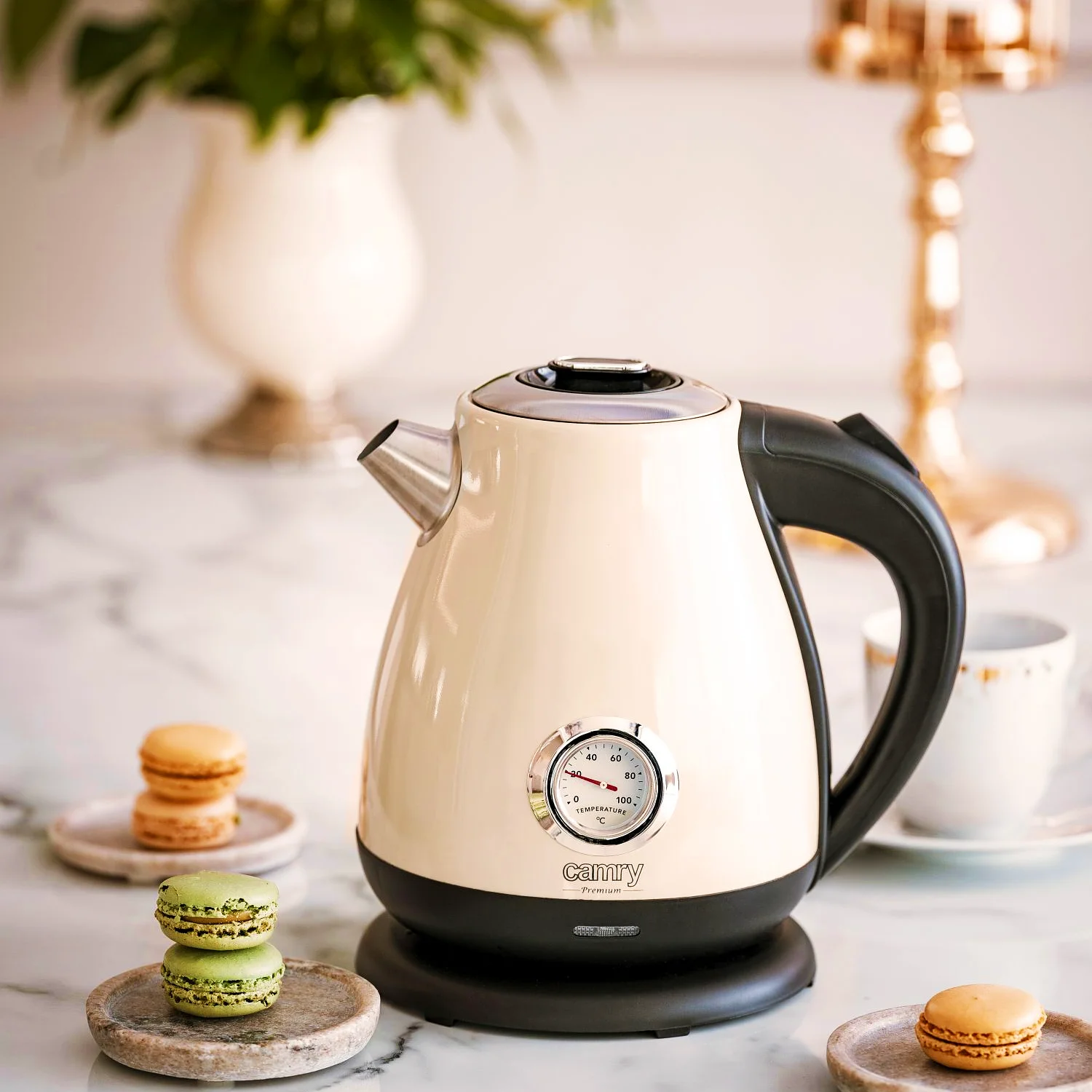 Elektromos Főzőedény vel Hőmérő 1.7L, 2200W, Biztonságos, Acél Berekesztés, Választékos Design, Drapp