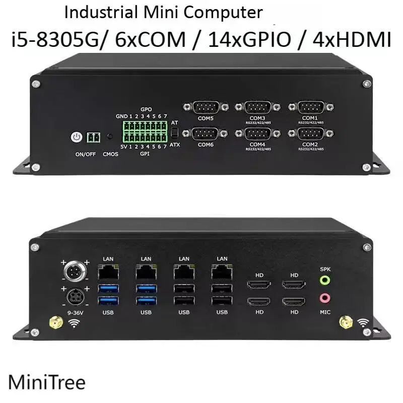 Fanless embedded Gyáriparos PC Csutka i5-8305g 6xcom ports 14xgpio 4X2.5GLAN Gyáriparos Fogadós supports asztali majd fali Felállított