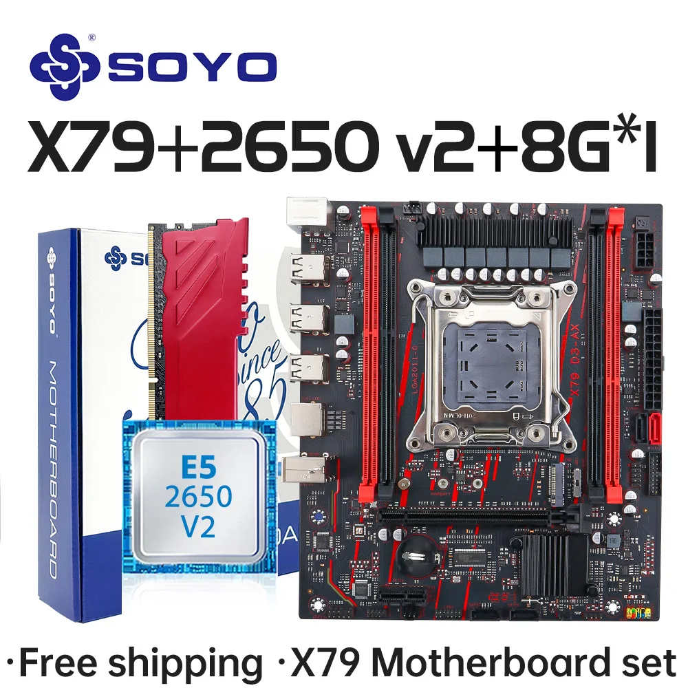 SOYO X79 Csonka Alaplap LGA 2011 beállítása vel E5 2650 V2 CPU 8G*1 DDR3 ECC Belésüpped memória M.2 Elnevez Számítógép components Alaplap