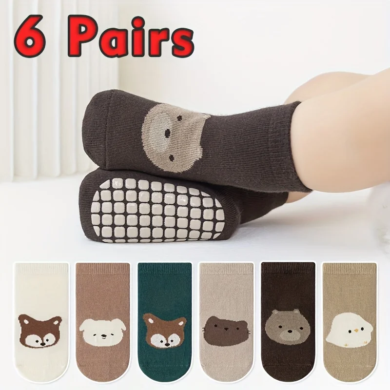 6 pairs bel fiúk majd girls' anty Félrelépés Zokni vel aranyos Gúnyrajz Állat Minta, Kényelmes majd Lélegezhető Baba Emelet Zokni