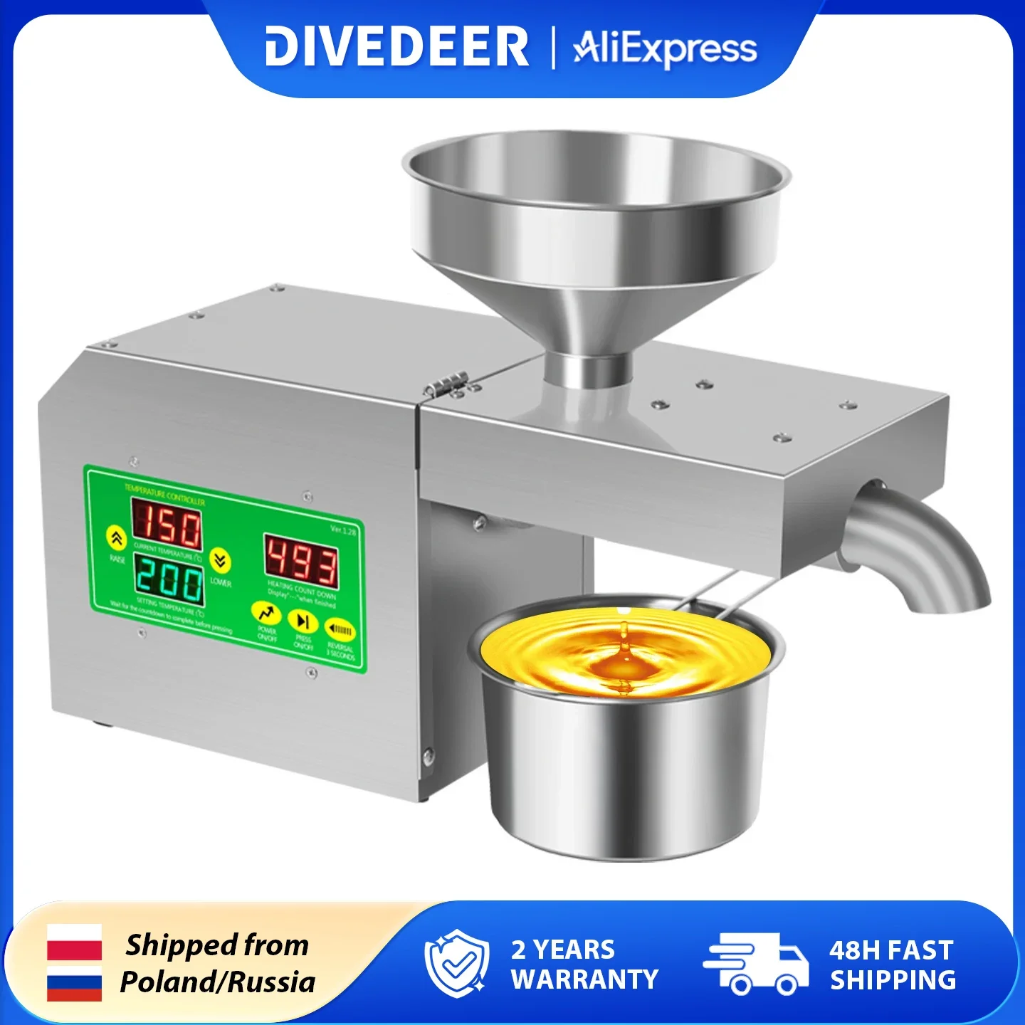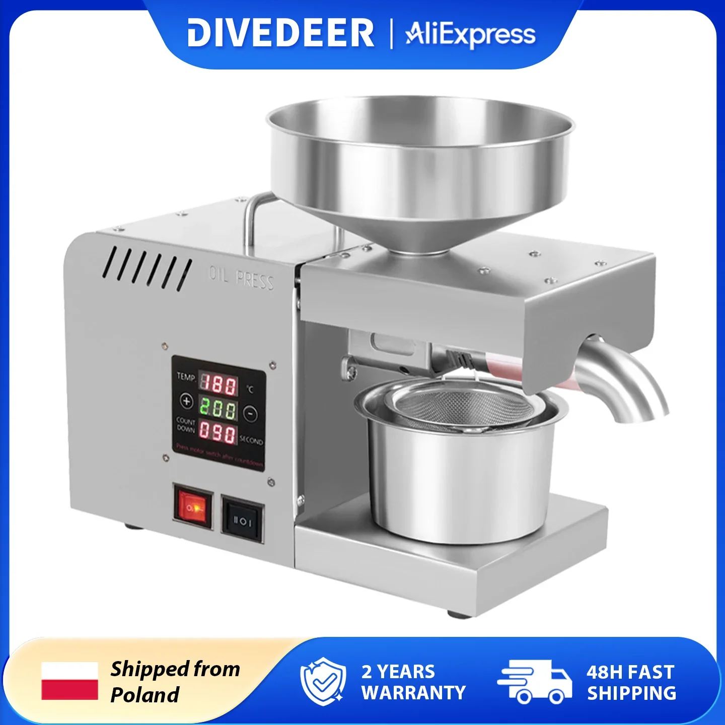 DIVEDEER X5S Rozsdaálló Acél Beolajoz Fehérneműs szekrény Eszes automata Hőfok kontroly Ablaktábla Amerikai mogyoró Napraforgó Vetőmag Dióbél Olajbogyó Beolajoz