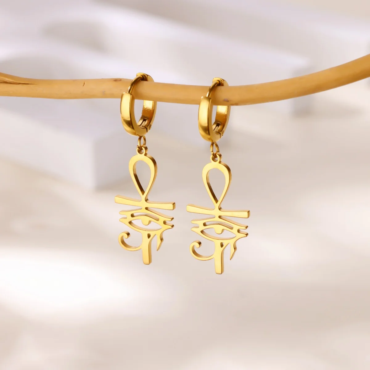 Egyiptom Ankh Kellemetlenség Érlelődik Csepp Aggat fülbevaló Nők Rozsdaálló Acél Arany színben Egyiptomi Feszület Amulett Fülbevaló ékszer E1714S08