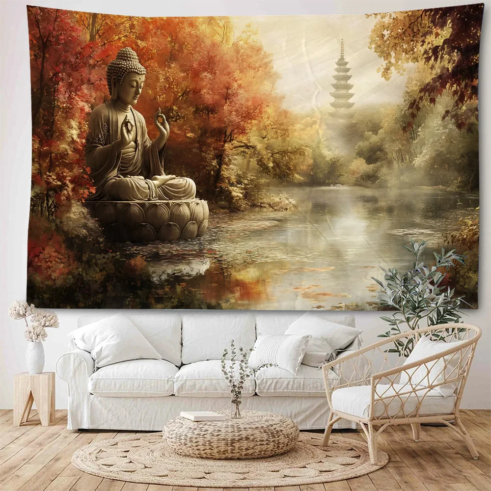 1 Akta Díszes stílusú Buddha majd Lótusz Falikárpit, gépi Lemosható, Messzemenő Poliészter fali Akasztás számára Életszerű szoba majd Hálószoba