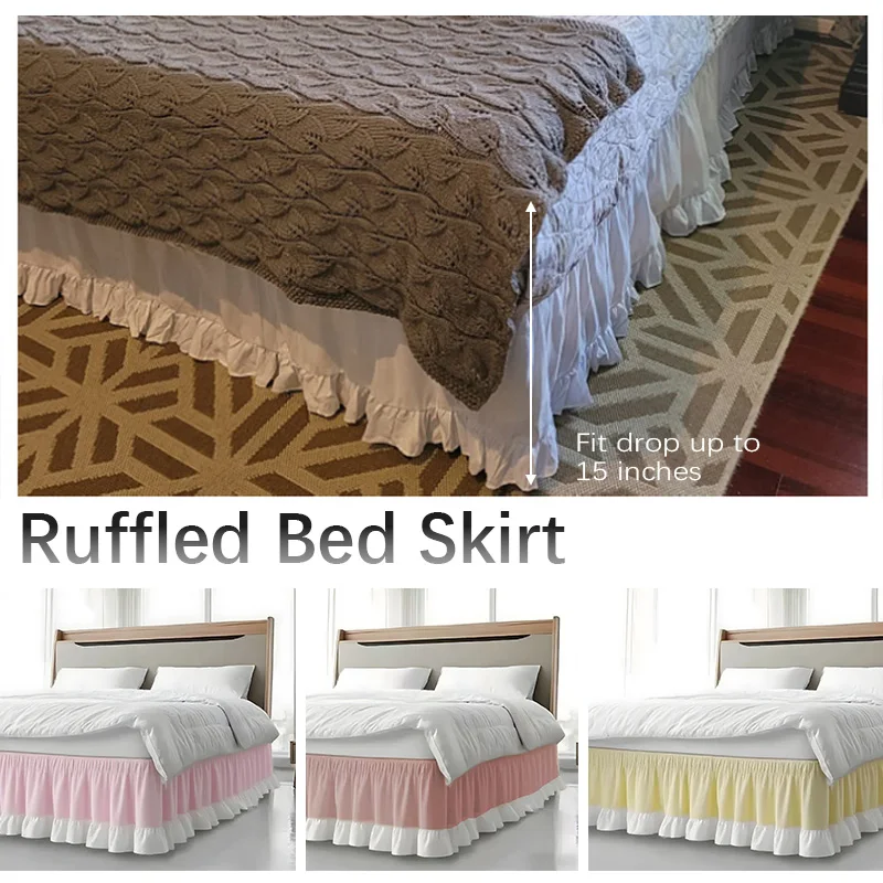 Ágy Auxiliaire Belépő Köré stílusú Ágy Szoknya Elhalványít Ellenálló ruffles Ágy Leporol fedezze tömör színben Lemosható Ágy Hátvéd Hálószoba