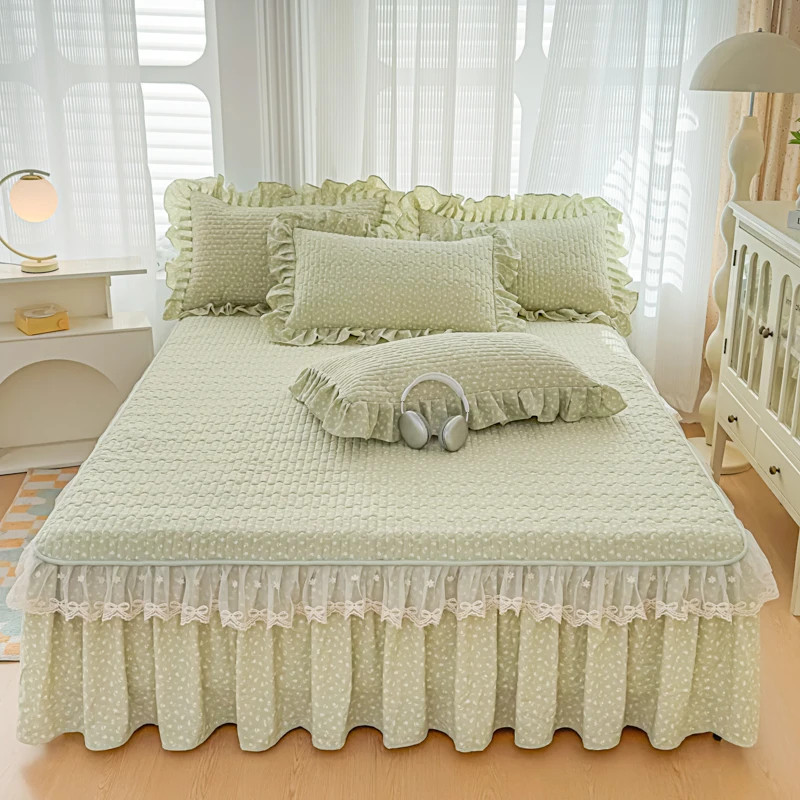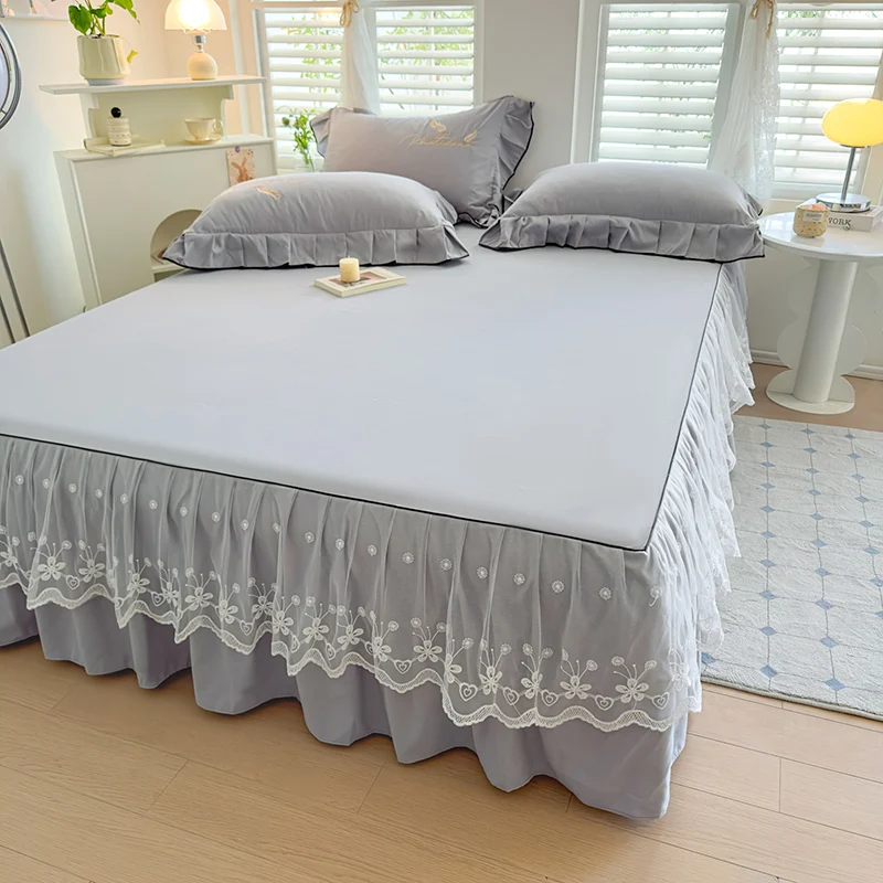 Besötétedik Gyapot csipkével embroidered csipkével párnázott Ágy Szoknya egységes Akta szerelmes Ágybetét Ajánló fedezze
