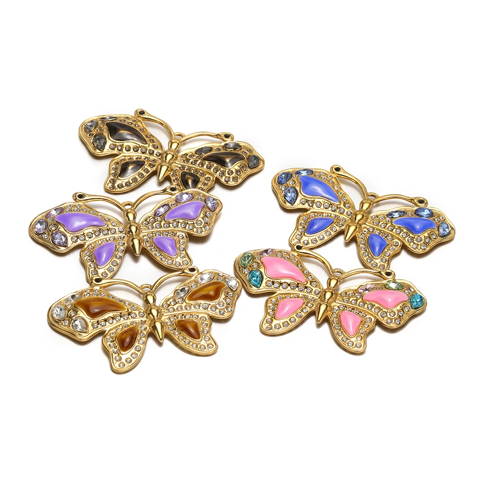 2db Rozsdaálló Acél Zománc Messzemenő Lepke medálok Fülbevaló charms számára Bohém ékszer Gyártás DIY Nyakdísz Karcsat decoratie