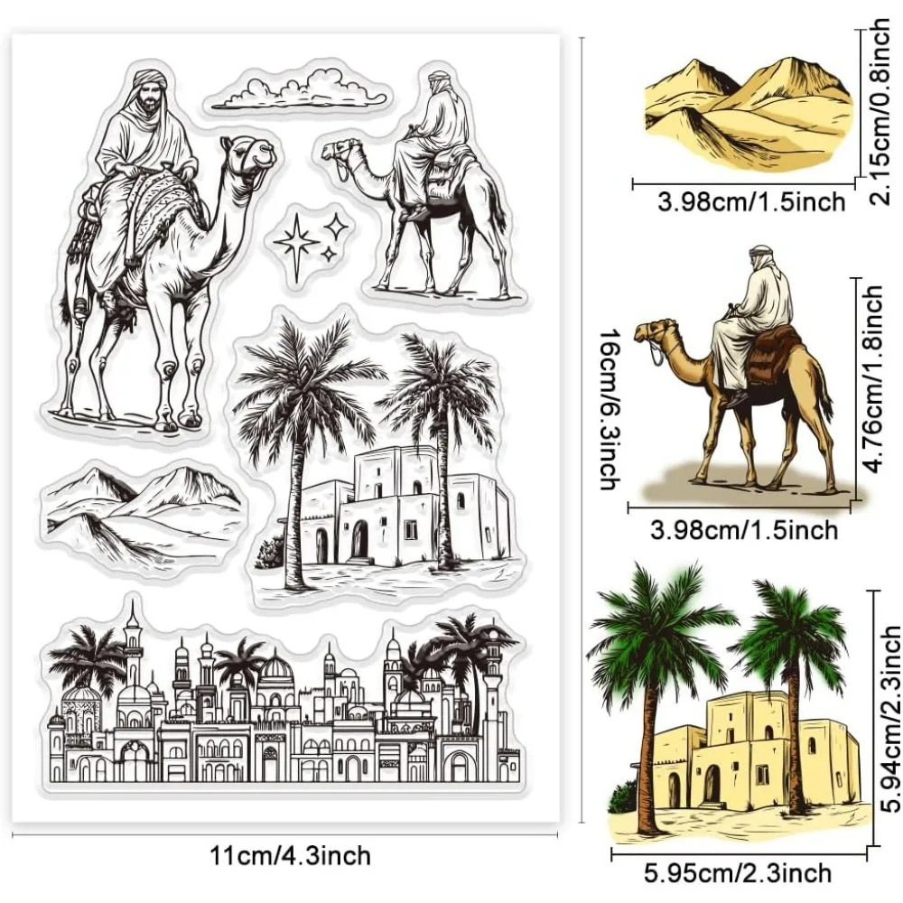 Arabok camels Marok Fa Meghiggad bélyegek Meghiggad bélyegek tömítő bélyegek számára DIY decorativa kártyák Gyártás Púposteve Alak 6.3X 4.33x 0.12inch