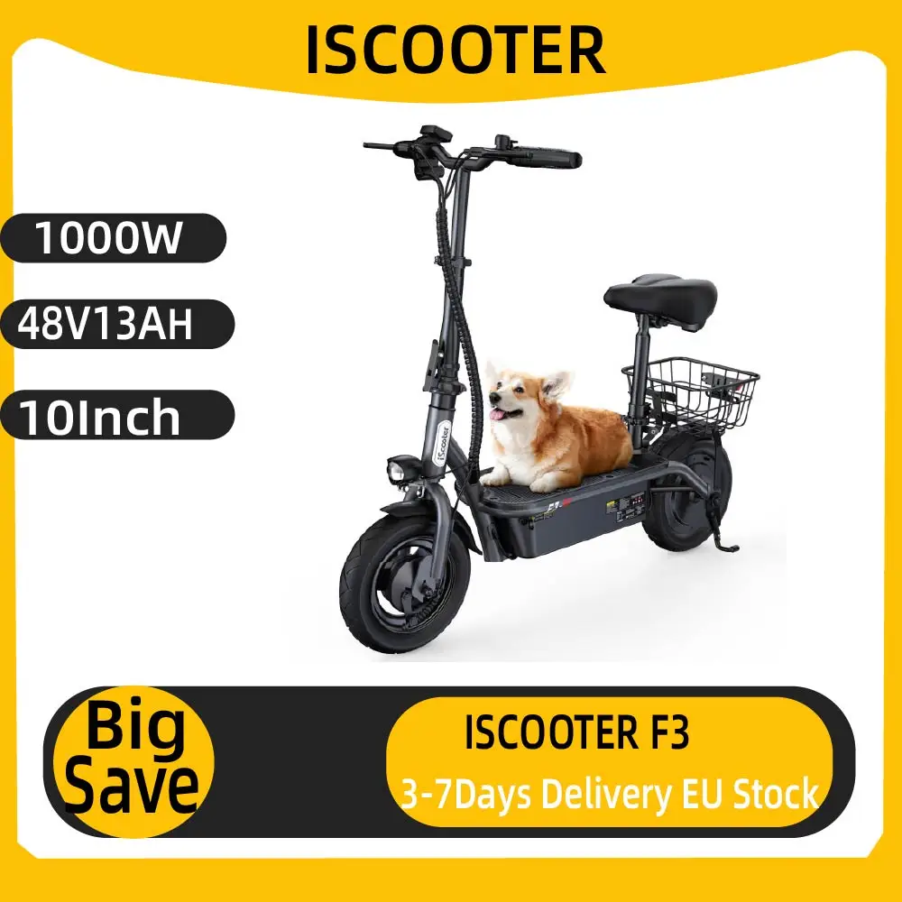 ISCOOTER F3 Város Elektromos Motorroller 1000W motoros escooter 48V13AH Akkumulátor foldable Felnőtt e-scooter 10-inch tubeless Autógumi escooter