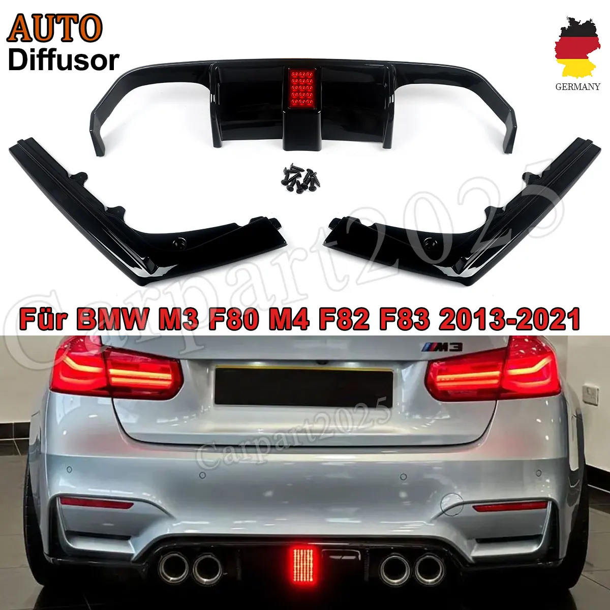 Számára BMW M3 F80 M4 f82 F83 2014 2015-2020 hátsó Festékpárna Diffuzőr vel ledes ligh hátsó Domboldal splitters Spoiler Ajak Ágcsernyő vcc stílusú