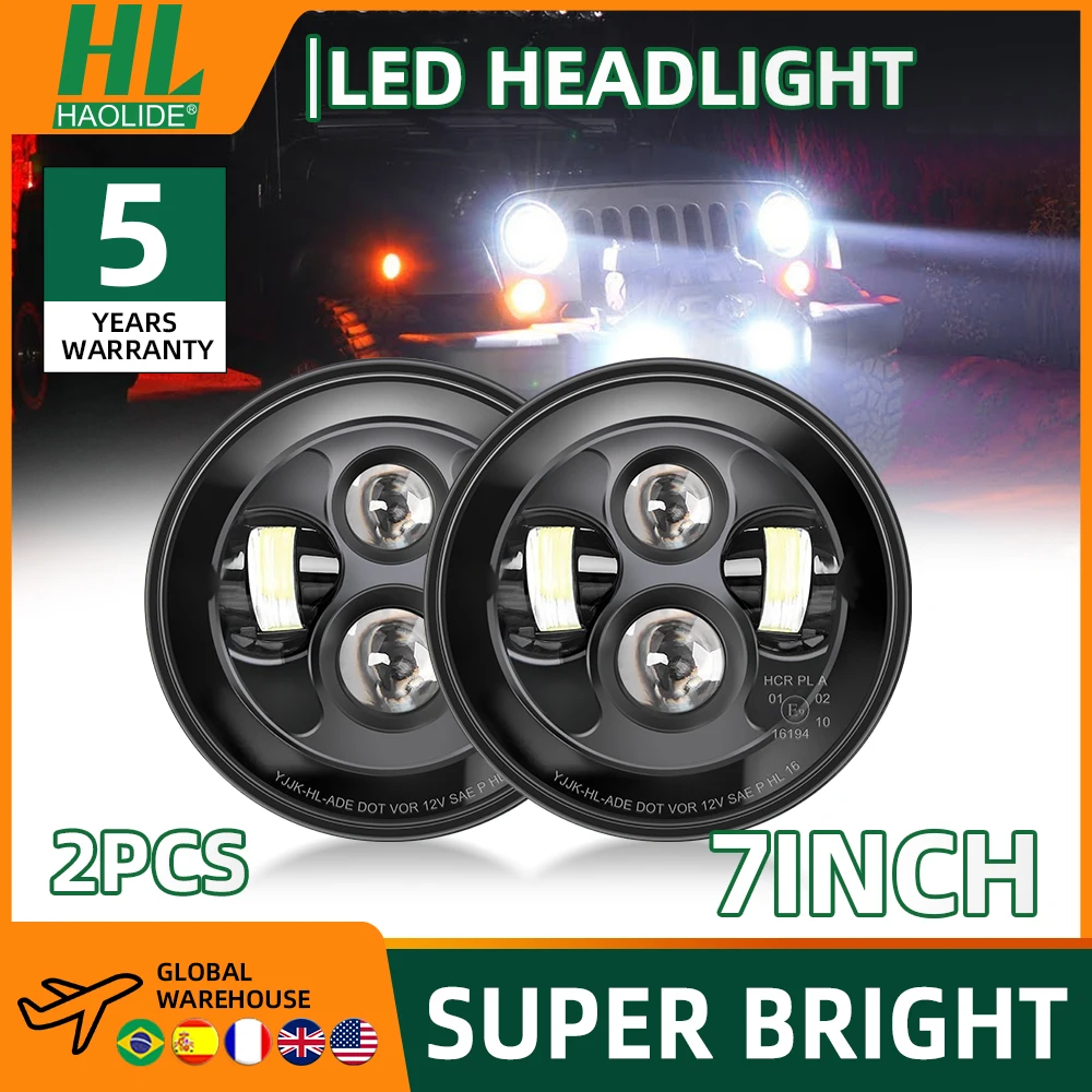 HAOLIDE 7 hüvelykes Futam ledes Első lámpa Magas Alacsony Agancs középága E9 Pont számára Dzsip Csikós JK TJ számára Homár H1 H2 12v 24V számára suzuki Szamuráj 4x4