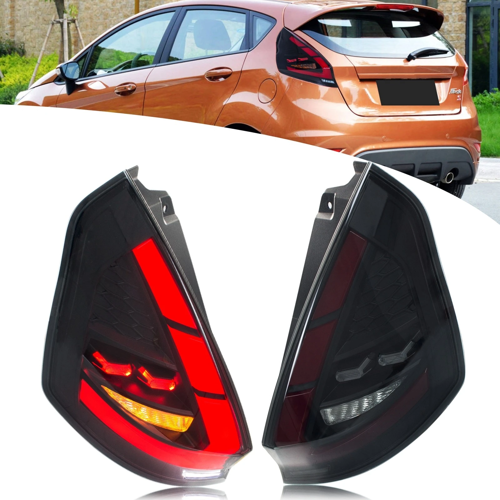 Ledes Farok Világítás számára Gázló fiesta mk7 MK7.5 Maga Háromajtós kiskocsi 2008-2018 Szekvenciális Villanófény Fék Ágcsernyő hátsó lámpák Ácsolás