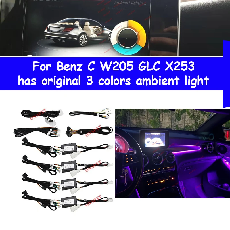 Számára benz C W205 glk X253 2015 -2018 Modul Csatornahálózat Eredeti autó 3-color Környező ligh Lejtő 64-color ledes decorativa ligh