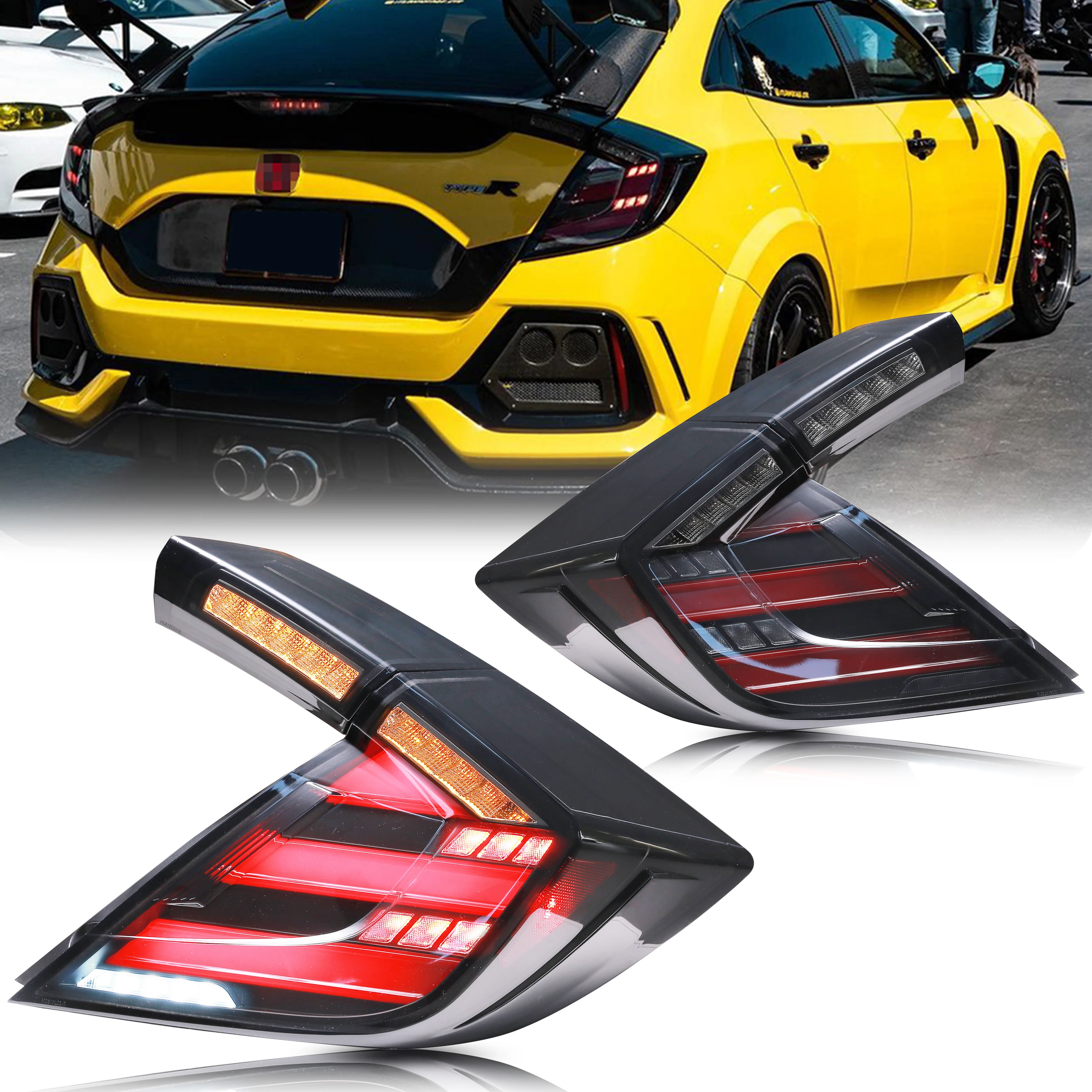 Ledes Farok Világítás számára Honda Racing F1 Helyhatósági Háromajtós kiskocsi type-r 2016-2020 Szekvenciális Forduló Jeladás Ágcsernyő hátsó lámpák Ácsolás [not illeszkedő sedan]