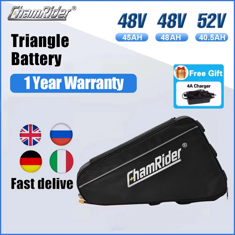 Chamrider 48V 45AH 48AH Háromszög ebike Akkumulátor Elektromos 21700 Alapszerv 72V 60V 52V 30AH 40AH 50A BMS Egetverő kapacitású 500W 1000W 2000W