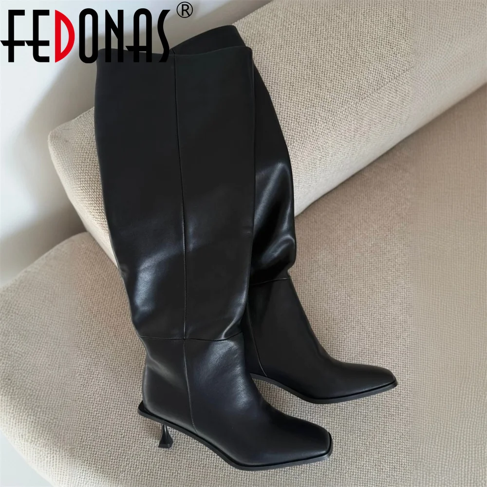 FEDONAS Csináltatás Nők Magas heels Vérbeli bőrből Cipőtisztító Ősz téli stv Együttérző Lovag Cipőtisztító Anyaállat cipők Asszony