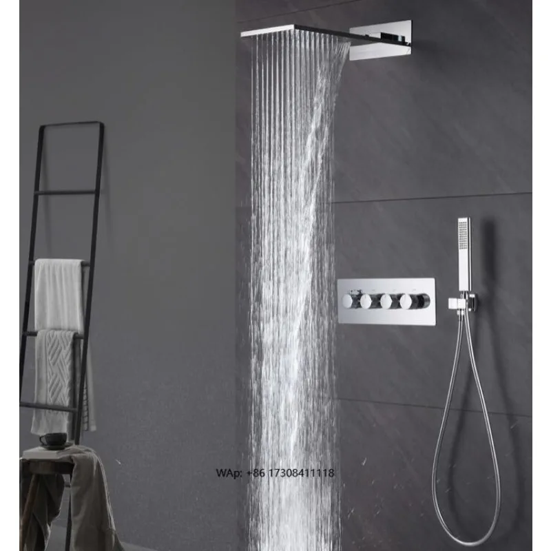Csillogás tömör Merészség wall-mounted three-way Állandó Hőfok Csapadék Vízesés Elbújik zuhany Keverőpult beállítása fürdőszobában zuhany Rendszer