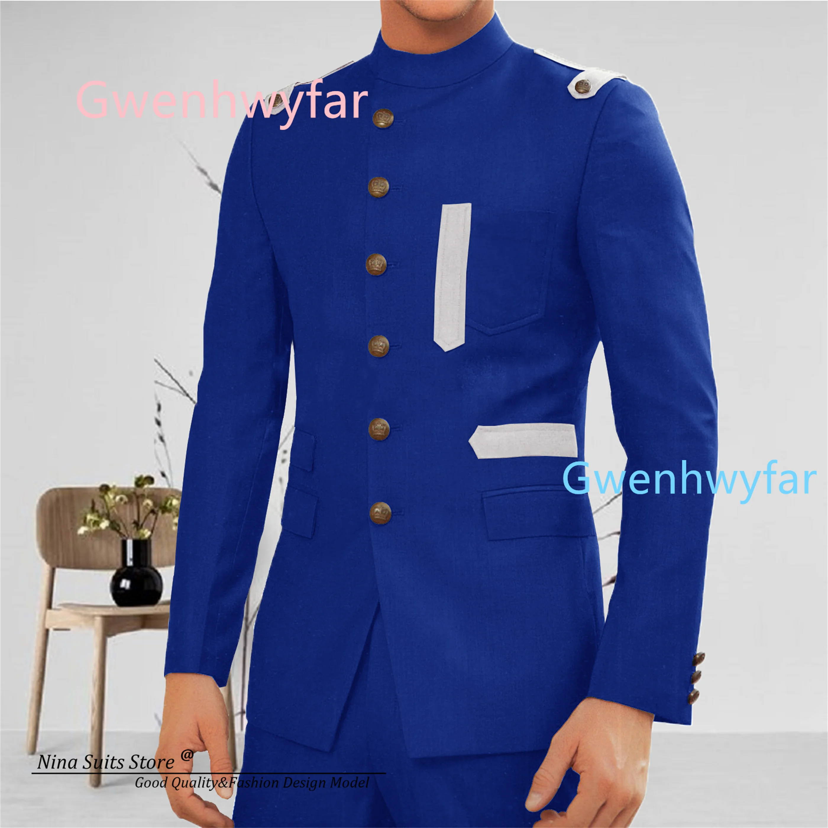 Gwenhwyfar 2026 Új Árufelhozatal Királyi Kék férfiak suits állni Csőbilincs Blézer vel Csekély nadrágot Elhűl férfiak Avatás suits vel Kevert színben Ácsorgás